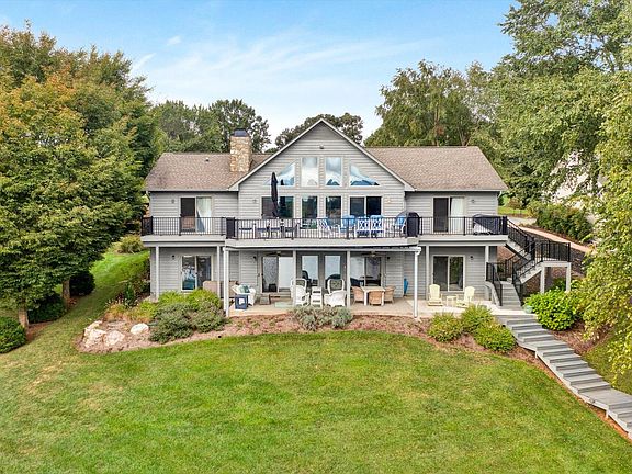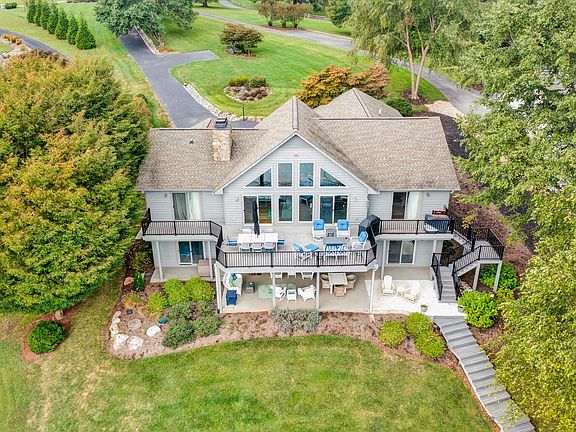 ''This stunning lake home has a gentle walk to the waterfront with beautiful water views. The open great room features a wall of glass overlooking the waterfront and opening to the large deck. The well-designed kitchen offers white cabinetry and granite countertops and opens to the dining area. The spacious primary suite offers a luxurious bath with a jacuzzi tub and walk-in shower. There are 2 additional bedrooms and another bath on the living level. The terrace level offers a spacious family room with a second fireplace, plus there is a full kitchen, and two additional bedrooms, and 2 full baths. Completing this fantastic lakefront property is the double-covered boat dock with a lounging area, and storage. It is truly a waterfront property that you want to keep from slipping by.'' This home is great for entertaining the whole family. Decorated with five bedrooms and 4 bathrooms. 4 of the bedrooms all overlook the water. One makes a great family suite with two built in bunks and holds two more beds currently. Lower walk out terrace level is covered and for great outside living and playing.