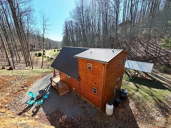 Looking for a "like new" chalet in the mountains? This 2023 finished cabin is perfect for you! As you arrive, you'll find a freshly graved road leading to your oasis, complete with a wooden porch illuminated with lights, ideal for enjoying a cup of coffee or tea outside. Upon entering through the double doors, you'll be greeted by beautiful wood finishes throughout, including wood walls and flooring. The open living and dining area features a cozy fireplace to keep you warm during the winter months. The kitchen boasts modern black and wood cabinets, updated appliances, and small windows that fill the space with natural sunlight, all under cathedral ceilings. The main floor includes a guest room with a spacious closet, and across the hall is a fully finished bathroom that also houses a washer and dryer. Near the refrigerator, you'll find built-in wooden shelves for easy access when storing groceries.. As you head upstairs, you'll discover the master bedroom, complete with an en-suite bathroom featuring a double vanity and additional wooden storage. One of the highlights of this property is the proximity to the community use area with branch and pavilion, perfect for summer barbecues. Best of all, you won't have to worry about moving in a bunch of furniture —furniture is included, making your transition easy and quick! Small list of exclusions and personal items to be provided! Make this sweet cabin yours TODAY!