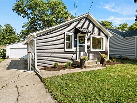 Dream a Little Dream. This refreshed older home perfectly combines charm with modern updates. An adorable one-level living home, it comes with all the major investments already made: new roof, siding, windows, renovated kitchen and bath, new flooring, and fresh paint. Inside, enjoy a brand-new kitchen with stainless steel appliances, hardwood flooring, a large primary bedroom, and a designer-tile bathroom. The home is freshly painted throughout, and an unfinished basement offers extra storage or future potential. Outside, there is an adorable yard and two-car detached garage provide convenience and versatility. Situated on a terrific lot in a "walk-to-school" neighborhood, this home is just five minutes from downtown. Compact, charming, and move-in ready - all the hard work is done, so you can start living your dream.