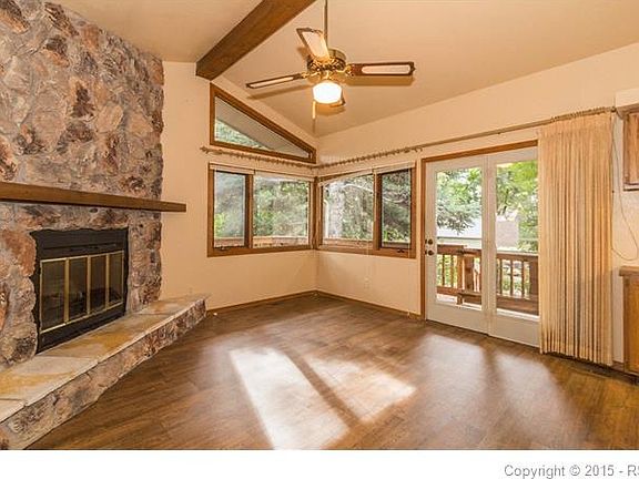 Nestled away in the hills & red rocks this ranch home offers comfort & convenience. Surrounded by tall mature trees & manicured landscaping, this location offers peace & quiet. Walking distance to Garden of The Gods Park/Trail system. Easy access to shopping, entertainment, & main roads! Entry opens to spacious living room boasting warm hardwood floors & large newer vinyl windows letting the natural light pour in. The kitchen is just steps away, w/ ample storage space in the freshly re-stained solid oak