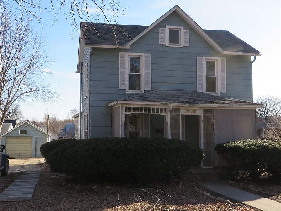 A screened front porch leads to a large living area with hardwood floors. The main level is recently painted and also has a formal dining, large kitchen with new laminate floor, full bath and an enclosed back porch. The second floor has new carpet and paint, three bedrooms and a half bath. There is an inside stairway and outside entry to the basement which has wood paneling and could be made into a family room. There is also a part finished bath with a shower in the basement. The home is on a nice lot with shrubs and mature trees and a front driveway to the single car detached garage. There is alley access to the backyard and a lily pond with stone patio area.