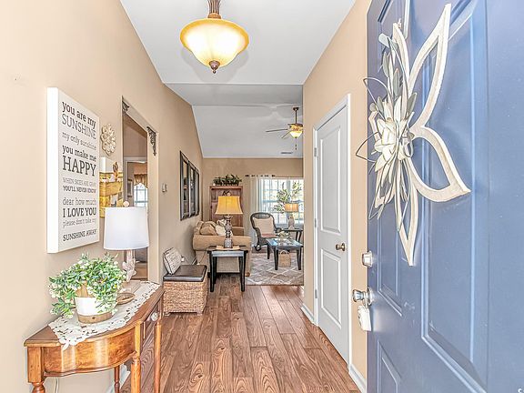 Charming Home on a Premium Pond Lot in Myrtle Lakes North – Just 15 Minutes from the Beach! Nestled on a quiet cul-de-sac in the desirable Myrtle Lakes North community, this beautiful home offers a premium pond-front lot with breathtaking views, a spacious all-seasons patio, and modern updates throughout. Enjoy the peaceful surroundings while being just 15 minutes from the white sandy beaches of North Myrtle Beach and minutes from local grocery stores, restaurants, and the farmers market. Step inside to an inviting open-concept living space featuring a vaulted ceiling living room with a ceiling fan, seamlessly connected to the kitchen. The kitchen is well-appointed with white appliances, a breakfast bar, a pantry, and a new refrigerator. A cozy dining area leads to the large tiled screened patio, where sliding windows allow you to enjoy the space year-round while taking in the serene pond views. The home features three comfortable bedrooms, including a primary suite with an en-suite bathroom, a ceiling fan, and a spacious closet. The two guest bedrooms both include ceiling fans and ample closet space, sharing a full guest bathroom with a large vanity, a tub/shower combo, and a linen closet. The laundry room is equipped with a recently replaced washer and dryer, both of which convey. Designed for both comfort and functionality, this home includes an oversized two-car garage with built-in storage, a workshop area, and a screened garage door. Additional upgrades include a new HVAC system installed in 2024, a wired generator with a transfer switch, and a front storm door. Located in Longs, SC, Myrtle Lakes North is a charming community with low HOA fees, sidewalks, a swimming pool, and a sun deck. Enjoy a quiet, relaxed lifestyle while remaining close to Highway 9, shopping, dining, and entertainment. Don’t miss the opportunity to make this pond-front gem your new home—schedule your private showing today!