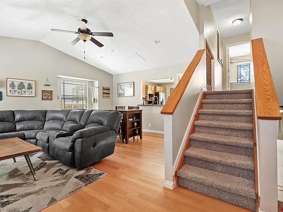 Welcome to this charming 4-bedroom, 2-bathroom home with a 2-car attached garage. The main floor features an open living room and kitchen with plenty of natural light. Step out onto the deck from the kitchen for outdoor enjoyment. Upstairs, you'll find 2 bedrooms and a full bathroom. The walk-out basement offers 2 more bedrooms, a full bathroom, and a laundry room. Situated within walking distance to the Hawkins Nature Preserve, you'll have easy access to beautiful concrete walking and biking paths. Embrace the tranquility of nature as you explore the preserve and enjoy outdoor activities with family and friends. The backyard features aspen trees, a shed/chicken coop, and a fenced area with raised garden beds. Don't miss the opportunity to make this house your home. Schedule a showing today and experience the charm, comfort, and convenience that this property has to offer.