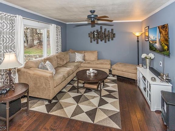 The amazing curb appeal this home has is only the start of what is inside. White vinyl siding with copper gutters separates this home from others. The inside is kept in immaculate condition. Newly installed hardwood throughout the home. Large eat in kitchen with stainless steel appliances & plenty of cabinetry. Off the kitchen is access to the back yard which is large and fenced in. Enjoy entertaining on the back deck. The flexibility of this home with the configuration of rooms allows for a multitude of use from a in home office to an additional rec room. Many of the rooms are updated with decorative molding. 2017 a new high efficiency gas furnace w/ on demand water heater. Updated windows. Just mins from rt 80, mass trans & lots of summer fun at Lk Hopatcong.