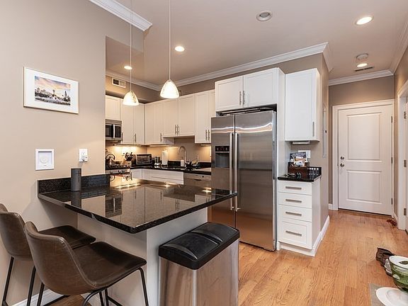 Beautiful South Boston home with outdoor spaces including a large private deck and a rare private landscaped backyard in the city. The favorable floor plan creates ideal work from home settings and has hardwood floors, recessed lighting, a gas fireplace, and central AC/Heat. The kitchen has custom cabinets and comes fully equipped with Bosch appliances, including a gas range and a wine fridge. The master bedroom includes a large closet and a double vanity bathroom. There is in-unit laundry and spacious deeded storage. You're just steps to M St Park and all of the attractive retail options along E Broadway.