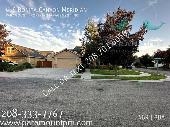 This 2628 square foot single family home has 4 bedrooms and 3.0 bathrooms. This home is located at 619 E Bonita Canyon St, Meridian, ID 83646.