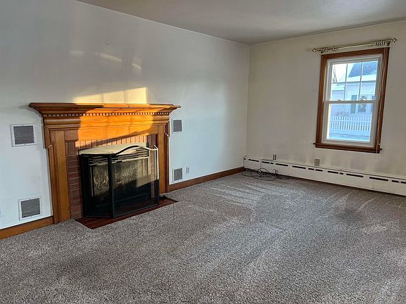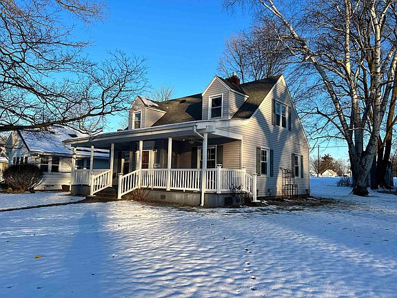 Inviting & Charming Home! Stamped Concrete Sidewalk to this Great Covered Front Porch with Swing. 3 Bedroom with 1-1/2 Half Baths. Large Dining/Living Room with Corner Built In & Gas Log Fireplace. Kitchen appliances remain (Refrigerator, Dishwasher, Microwave, Range-electric). 2 Bedrooms & Full Bathroom Upstairs. Full Basement Unfinished. Washer & Dryer in Basement included. Mature Trees & Desirable Neighborhood. Main Floor Bedroom. Lots of Storage. Boiler Heat & Central Air. Lots of Natural Light. Well Maintained. Move In Ready! Shed & Covered Patio. Priced to Sell at $165,000.
