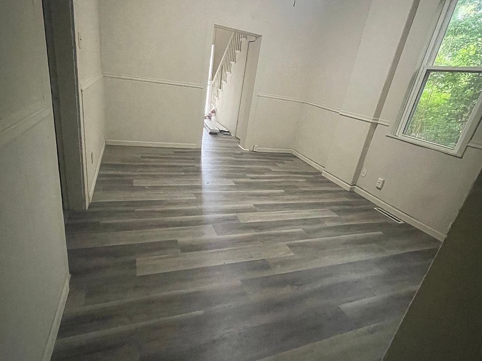 Large 2 bedroom 1 bath duplex unit has a large living room area on main level along with kitchen, a bedroom and a large room which can be used as an office or another bedroom. There is also a loft bedroom upstairs. There is basement for utility access. Freshly painted, new flooring throughout, and new furnace. Tenant pays all utilities and lawn care. Pets allowed with non-refundable deposit and an additional monthly fee.