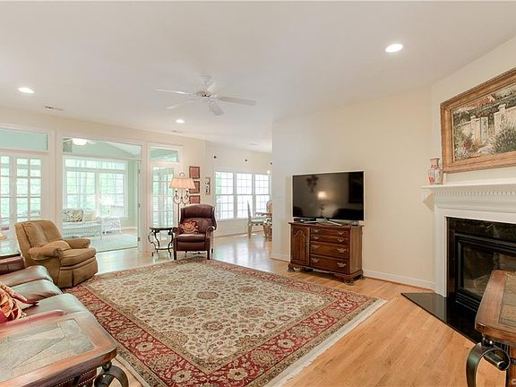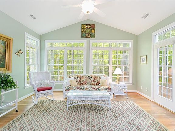 Beautiful one level low maintenance home in Cedar Grove with private rear woodland views from deck, sunroom, breakfast room and owner's suite! Complete peace and quiet! Open concept floor plan, gleaming hardwoods throughout and nine foot ceilings. Glorious sunroom with vaulted ceiling, feature window and French door to the deck. Large kitchen with new dishwasher, refrigerator and microwave, pantry and island open to large breakfast room. Huge family room with gas log fireplace plus dining room and office. Owner's suite has double vanity, jetted tub, separate shower, private water closet and walk-in closet. Security system, central vacuum and 2 car garage. Super clean and turn key condition. Quick possession. Community water & sewage. Just minutes to Capital One at West Creek. Optional recreation Manakin Woods membership for lake, walking trails and tennis.