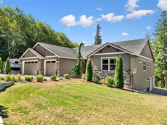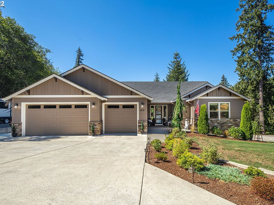 Beautiful one level living on 2 acres. Enjoy views and creek from the 16x18 partially covered deck. Room for all your toys w/oversized 5 car garage space & RV/Boat parking w/ electrical hook ups. Tons of storage incl space in unfinished daylight basement. Light & bright open concept w/ large windows, cozy gas fireplace, built ins, hickory floors, granite, ss app, tile backsplash. Master suite offers large walk in, tiled shower & dbl sinks. Just mins to salmon fish hatchery & boat launches!