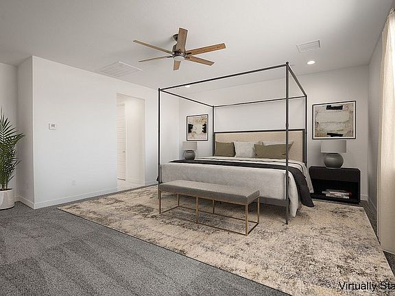 RIYAN HOMES Introduces Newly Built & Skillfully Designed Single-Story located in a Boutique Henderson Community. Sitting on Over a 10K SQFT Lot w/ RV Parking, Hookup & Landscaped Front Yard for Elevated Curb Appeal. The Open Concept Design Allows the Family Room to Flow Seamlessly into the Kitchen, Finished w/ Calacatta Quartz Counters, White Shaker Cabinets, Soft Close Drawers, Walk-in Pantry & Full LG Appliance Package! Enter into 9' Ceilings, Durable LVT Flooring & Upgraded 5” Baseboards. Find Contemporary Conveniences w/ Raised TV Outlets, Low E Windows, & Split Control AC. An Oversized 3-Car Garage Includes 8’ Automatic Door & Outlets on Every Wall. The Owner’s Retreat Boasts an Ensuite w/ Quartz Walk-in Shower, Dual Sinks & Spacious Walk-in Closet. 3 Additional Bedrooms Provide Space for Home Office, Gym, or Game Room. Noteworthy Features: Tankless Water Heater, Laundry Room w/ Front Loading W/D, Large Private Backyard, No HOA, Uplit Landscaping & More!