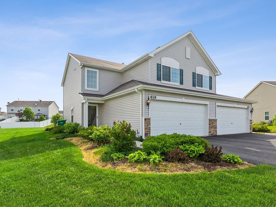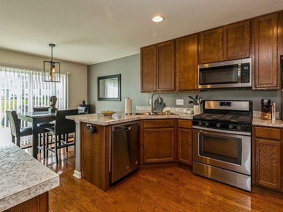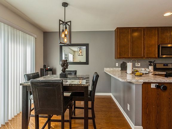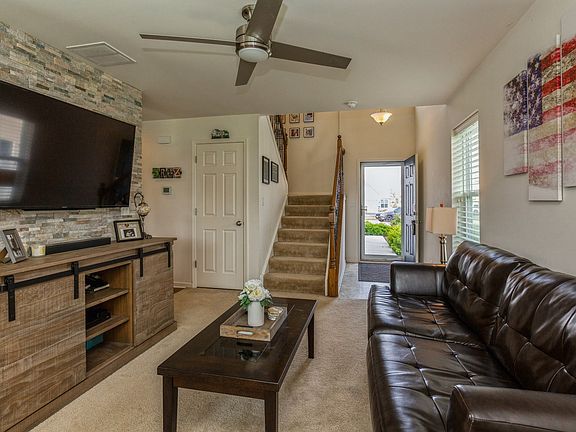 This lovely home is a move in ready 2-story 1/2 duplex and has three bedrooms, an oversized kitchen with stainless steel appliances, unique chalk board wall and wood floors, dining area also has wood floors. The family room is carpeted and tasteful decorated. Master suite has a full bath and walk-in closet. The dining area has the entrance to the nice size concrete patio and one of the largest lots in the subdivision. Nicely landscaped.