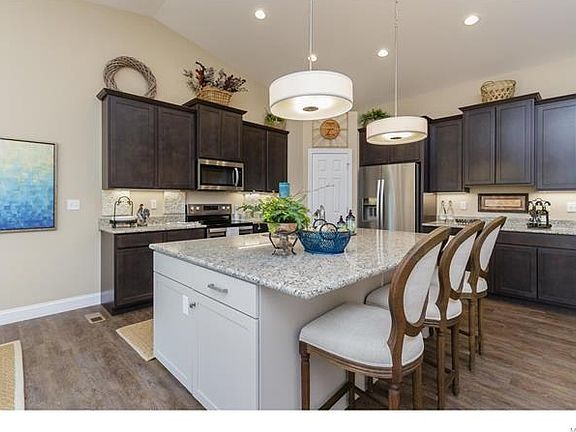 Luxury Villa in a fantastic Wentzville location with low monthly fees. Impressive 2 BD, 2 BA home with 1,600 sq ft of open living space! The exterior is brick and stone with architectural shingles, prof landscape, coach lights, full yard sod, irrig system, low maint vinyl siding, a 12x12 composite deck, 12x12 concrete patio and a wrought iron mailbox. Features include an oversize garage with 2 ft added depth, 9 ft ceilings with vaults, Deluxe Kitchen, granite countertops, st stl appl, 42 inch cabinets, under cabinet lighting, main floor laundry, luxury vinyl plank flooring, cust wall color, 5.25 inch base trim, double bowl vanity in the Master Bath, walkout basement with added windows, rough in bath and more. This intimate, all cul de sac community of low maintenance villas has easy access to Hwys 40-64 & 70, shopping, restaurants, health care, golf, recreation and fitness centers. Outstanding and limited opportunity by Bridgewater Communities, your Villa Experts! FINAL OPPORTUNITY!