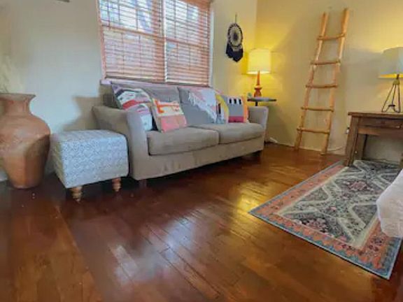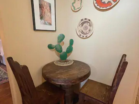 A restored early 1930's Adobe Casita located in the beautiful South Capital neighborhood in the City Different! Furnished with a rustic bohemian vibe, king size bed, a fully stocked kitchen, wireless internet, smart TV where you can log in to your favorite tv streaming apps, private parking, and your own personal patio. Studio apartment for rent. Fully furnished. $2200 rent with $500 deposit. 3 months maximum. Heating and cooling, washer and dryer on site. Owner pays utilities. Cleaning fee of $150. No pets. Please TEXT OR EMAIL Natalie at Little Adobe if interested.