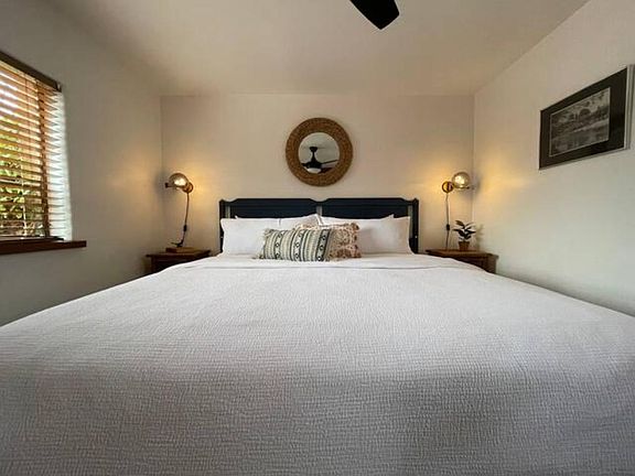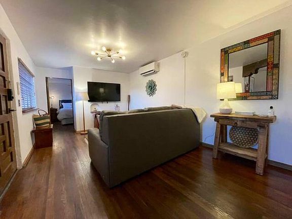 Furnished with a rustic bohemian vibe, king size bed, couch with a pull out bed, fully stocked kitchen, wireless internet, smart TV where you can log in to your favorite tv streaming apps, private parking, and your own personal patio. One bedroom apartment for rent. Fully furnished. $2400 rent with $500 deposit. 3 months maximum. Heating and cooling, washer and dryer on site. Owner pays utilities. Cleaning fee of $150. No pets. Please TEXT OR EMAIL Natalie at Little Adobe if interested.