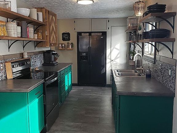 Beautifully remodeled home with modern industrial flare! With new flooring, fixtures, and paint throughout this home is move in ready. 4 bedrooms (2 up 2 down) and 2 bathrooms. The main bath has a glorious, tiled shower with double shower heads and a bench seat. The double sink vanity and beautiful hex tile floor gives this space a spa like feel. Love to entertain? There's plenty of space for it in this home with its large family room and built-in bar, living room, sitting room, and dining room. The kitchen, with its stainless-steel tile backsplash, concrete counter and edgy green cabinets give it a modern feel while there is plenty of storage, a pantry and bonus closet. New downstairs bathroom with all new fixtures. Separate laundry room has extra storage as well. New a/c unit and updated electrical panel. Newer furnace. 2 car garage and extra workshop/ bonus space. Fully fenced yard makes a great place for kiddo's or your favorite four legged's! Good neighborhood, close to schools and churches! Come check it out before it's gone!