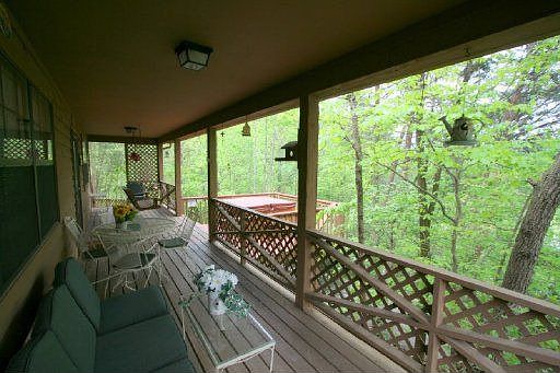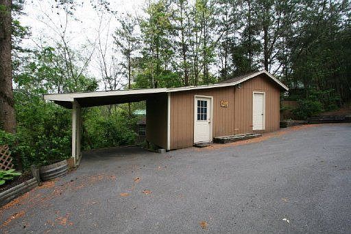 Back on market, this beautiful cabin was sold but buyers financing fell through, there lose is your gain, see now for the best location in the Heart of Pigeon Forge! Privately set on 0.75 acres and is accessed by all level roads. This tree shrouded freshly stained cabin is ideal as a permanent home or continue as a rental. Enter via the New 100’ asphalt drive to a large multi-car parking area or pull into your auto opener fully finished walk-out double garage. Just 5 wide steps up will lead to your totally private 39’ deck with swings, rockers and distant ridge views. Steps away is a 13’x13’ deck with private Hot Tub to enjoy the same amenities. Enter the immense open floor plan all with 18’ cathedral ceilings and a new stone hearth gas log fireplace to warm the large great room, adjoining dining area with big dining table, comfortably seating 6, plus a full kitchen large enough to prepare for an army, loads of cabinets too. This entire area and stairs has new carpeting and flooring. All new window coverings throughout. Two large 13’x14‘ and 12’x11’ bedrooms with king beds share a big bath. The upper level master is 15’ and has a 13‘bath with double vanity and sky light. All rooms have double windows or more for plenty of light and all new window treatments. It has been freshly painted and is in immaculate condition. These are caring and proud owners. All furnishings and appliances plus full size washer and dryer are included. Four TVs and DVD. To the right of cabin is a huge chain link fenced dog yard. Opposite the garage is a single carport plus a 24’ insulated work shop and storage building. This cabin home is reached by Lites 8, 7 and 5 all within 5 minutes of the parkway and 2 minutes from Veterans for e-z access to Hwy 66. Note: New A/C Unit installed on 6/15/12 Brokered And Advertised By: Regal Real Estate TN, LLC Listing Agent: WAYNE HAND