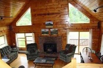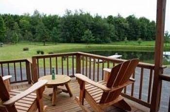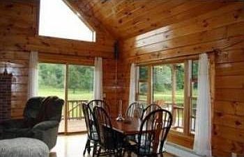 Exquisite Lincoln log home on 2.2 private acres surrounded by apple orchards. Pond stocked with rainbow & brook trout. Two car garage, paved driveway, wrap around porch, hardwood floors, fireplace w/insert & a wood stove in the full walk-out basement.