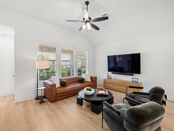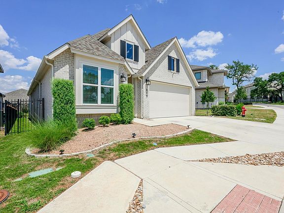 Beautiful 4-bedroom, 3-bathroom home with 1,969 sq ft of thoughtfully designed living space and the privacy of no front neighbor. This popular floor plan offers soaring 11’ ceilings, an open concept design, and elegant finishes throughout, creating the perfect blend of style and functionality. The gourmet kitchen is the centerpiece of the home, featuring a HUGE island ideal for entertaining, sleek white and black cabinetry, quartz countertops, upgraded backsplash, pendant lighting, and a boxed-out dining window seat. The open layout flows seamlessly into the dining and living areas, making it a true gathering space filled with natural light. The primary suite is a retreat with a spa-inspired bathroom that includes a frameless glass shower, rainfall shower head, two additional shower heads, mudset tile floor, and dual vanities. A private mother-in-law suite is located at the front of the home, offering separation from the other bedrooms and ideal for guests or extended family. Luxury wood-look flooring extends through all common areas, the primary suite, and the front bedroom, while upgraded designer tiles add character throughout the home, including fun, trendy tile in the laundry room. Every detail has been carefully selected for both comfort and style. Additional highlights include a newly added water softener, a covered patio with ceiling fan perfect for outdoor relaxation, and a 4-sides cream brick exterior for timeless appeal. The landscaped yard enhances the home’s curb appeal, and the thoughtful upgrades throughout make this property truly move-in ready. Enjoy resort-style amenities, as this home is conveniently located within walking distance to the neighborhood pool, pond, pickleball courts, and scenic walking trails, offering endless opportunities to relax and stay active close to home. This home combines modern upgrades, functional design, and inviting spaces in a location that offers privacy and convenience.