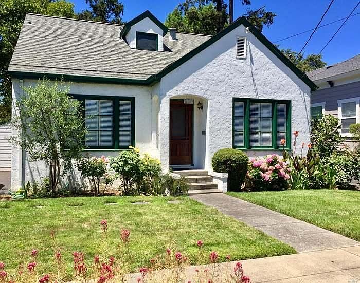 Charming 2-story bungalow in charming JC neighborhood; within walking distance to Downtown Santa Rosa. VERY easy access to 101 via car. House has its own front & backyard, impeccably maintained by owners. 1-car driveway parking; spacious 2-car garage with extra storage. Hardwood floors throughout first floor living, dining and bedroom. Separate breakfast nook with snazzy black/white thick linoleum. Carpet on stairs and 2nd floor. Combo washer/dryer. Gas stove. Main bedroom and full bath downstairs; 2 smaller BR and half bath upstairs - perfect for kids or office. Robust storage. NO smoking/vaping - inside or out. 1 year lease. Renter pays all utilities - trash/recycle/green; electricity; water. Internet optional. Owner pays landscaping. Pets - if approved, include a one-time non-refundable fee; as well as monthly fee.
