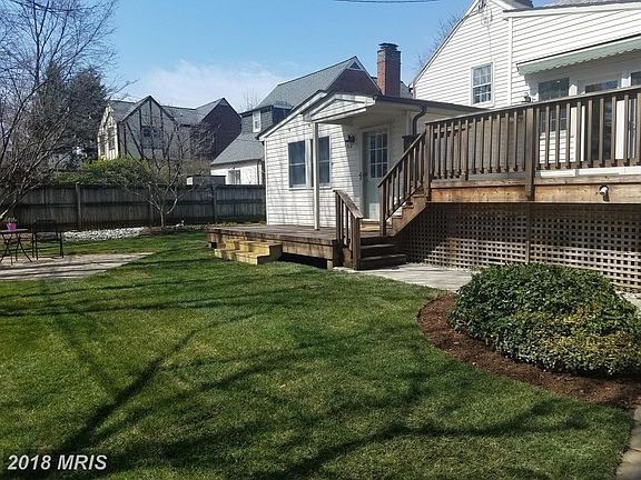 Stoneleigh 5 BR home w/ in-law quarters. Inviting front porch, gorgeous hardwoods, new SS appliances, & huge family room which is the heart of this home. Separate in-law suite accessed from foyer: bedroom, living area, full bath all above ground. Four additional bedrooms on 2nd level. Finished lower level. Deck perfect for grilling. Fenced yard. Light, bright, cheery & walking distance to schools.