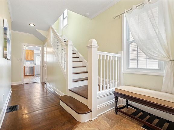 Welcome to this absolutely charming home in Carnegie! This residence exudes warmth and character with tall ceilings, recessed lighting, crown molding, and updates throughout. The living room boasts built-in shelves, a cozy reading nook, and a stone fireplace. Hardwood floors lead you into the dining room with its own decorative fireplace and plenty of space to entertain. The updated kitchen boasts stainless steel appliances, quartz counter tops and a breakfast bar. Upstairs, the primary bedroom offers ample closet space and an ensuite bath with a stand-alone shower and jetted tub, complemented by two guest bedrooms sharing the second full bath. The finished third floor presents a spacious room with a huge walk-in closet, perfect for any need. Outside, enjoy the maintenance-free deck and back porch overlooking a fenced-in yard with lovely landscaping, a fire pit, and a shed for your gardening equipment. Off-street parking for one car completes this delightful package.