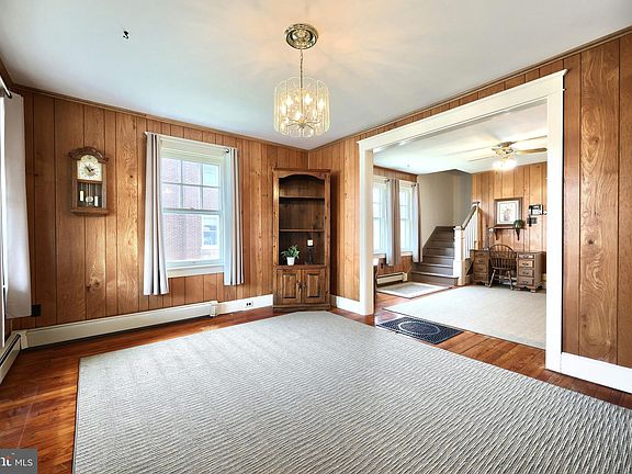 The charming home in Wrightsville has been lovingly maintained by the same owner for six decades. It features beautiful original hardwood floors and a timeless staircase. The main level includes upgraded features added over the years, such as a dishwasher, and the original pantry has been converted into a half bath. The eat-in kitchen offers plenty of cabinets, and all appliances will convey with the sale. The second level of the home offers three bedrooms and a full bathroom. Additionally, the attic provides ample storage space. There is a laundry chute in the upstairs hallway to the basement, where the washer and dryer are located for added convenience. The basement has more storage and if you remove the wood patch you will find a pit making weightlifting possible. The owner worked in the electrical field so there are plenty of outlets and all electrical work is labeled. The front porch, sidewalks, and level yard enhance the curb appeal of the exterior. Located within walking distance of local amenities, this home epitomizes small-town charm. A bonus feature is the spacious detached two-car garage. Move in and make it your own! As this is an estate sale, a home warranty is included for extra security.