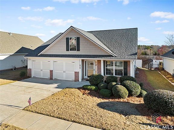 Welcome to 619 Majesty Crossing in the vibrant community of The Villas at Winder an active adult community in Winder, Georgia. This delightful two-bedroom, two-bath home boasts a low-maintenance lifestyle, complete with a two-car garage, vinyl siding, and an inviting brick front. Inside, discover a spacious open floor plan, featuring a living room with a cozy fireplace, gas logs, and a gas starter. The kitchen is equipped with stained cabinets, a range, microwave, dishwasher, and a one-year-old refrigerator, complemented by a generous pantry. Enjoy meals in the dining room, overlooking a covered porch and partially fenced yard for added privacy. The large master suite offers a roomy walk-in closet, an easy step-in shower, and a double vanity, accompanied by crown molding and a lovely trey ceiling in the bedroom. Additional amenities include a brand-new roof, one-year-old HVAC, and gas heat. The Villas at Winder provides a community center exclusively for residents, a clubhouse for guests, and enticing activities such as pickleball, fitness, and two pools. The appeal extends beyond the home, with neighbors fostering a friendly atmosphere and yard services simplifying life. Situated near shopping, dining, and the vibrant downtown of Winder, GA, 619 Majesty Crossing invites you to relish a lifestyle surrounded by like-minded individuals. Come and experience the ease of living and playing with peers in this charming community.