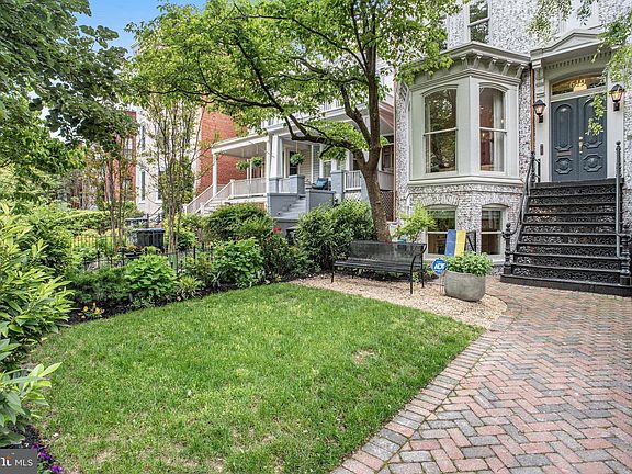 Yes, it's THAT house!! Spectacular 21' wide Capitol Hill Grande Dame w/exquisite entertaining spaces inside and out. This stunningly-renovated rare Second Empire style home seamlessly melds all modern amenities w/historic details including impossibly tall ceilings w/gorgeous original plaster medallions throughout, beautiful wood floors, 4 wood-burning fireplaces and aprox 3230sf of living space in the 4 bedrooms + 2 offices + huge family room, 3.5 bathrooms of the main home, PLUS a separate 150sf mini-gym out back, totaling aprox 3380sf per pro floorplans A commanding presence a half block from Stanton Park, featuring ornate historic iron stairs, a gracious double door entry foyer and large stair hall w/original banister and curved railing. The spacious and grand living room w/almost floor to ceiling bay windows and a fireplace w/original slate mantel welcomes conversation. Open the tall original pocket doors and step into a banquet-size dining room w/matching fireplace, and a stunning kitchen opening to huge patio beyond, creating the perfect flow for both large-scale or more intimate entertaining, w/a convenient powder room at rear of stairs. Architectural Digest-worthy immense and bright kitchen boasts stainless steel Viking appliances, built-in pantry, a long wall of tall cabinets above tiled backsplash and Carrara marble countertops and a huge center island breakfast bar w/farm sink and microwave. Side wall of windows and rear glass wall flood the space w/light. Imagine your next al fresco fete, stepping out to the very wide, DEEP slate patio featuring a deluxe built-in outdoor cooking area w/gas grill, built-in dining bench, 3 fans, lighting, and an evergreen turf area sheltered by mature tree. A mini-gym/yoga space currently occupies the flexi-use 150sf separate building at the rear of the property, while a cleverly-concealed gate to the alley makes for super easy bike and stroller access. The generous and comfortable primary ensuite bedroom fills the second floor: a spacious front bedroom w/large windows, a huge custom walk-in closet, lovely subway-tiled bath w/tub, a very large office/sitting room w/fireplace and a door to the massive private terrace, an oasis in the sky to relax on chaise lounges w/cocktails or to enjoy an outdoor yoga class w/friends. The skylit 3rd floor features 2 generously-sized bedrooms, the front w/a huge walk-in closet, the back w/a Capitol dome view, and the beautiful hall bath has marble tiles and glass stall shower. Connecting lower level features tall ceilings, w/generous entry foyer including space to sit and put on boots. A bright spacious family room w/windowed bay and wood-burning fireplace offers multiple places to relax and enjoy movie nights. At rear is the 4th bedroom, with separate 2nd office area accessed from inside or out, the 3rd bathroom w/heated floor plus glass stall shower, and a front-loading washer/dryer closet across from clever storage cubby plus microwave underneath stairs. Rest easy knowing this gorgeous historic home was lovingly restored and almost completely redone in the past 5 years (featured in Home and Design Magazine 2019) w/a new roof, central AC, kitchen, bathrooms, floors, most windows, front and rear exterior spaces, plus mini-gym/yoga building. Enjoy the best of Capitol Hill’s past and present in an enviable location a half block to Stanton Park and Peabody/Cluster School, and a short stroll to Eastern Market, US Capitol Complex, Whole Foods, H Street, Union Station, Barracks Row, multiple Metros and BikeShares. Carpe Diem!