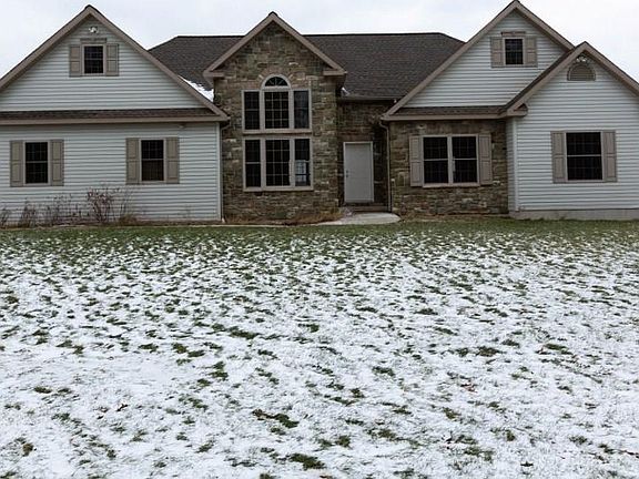 As good as it gets! This 2000 +/- Sq Ft, 3 BR 2 BA Brookside Ranch Home built in 2013 is offered on approximately 10 Acres. A large sunroom off the kitchen, hardwood floors, central air, vaulted ceilings, an attached two-car garage, and a whole-house natural gas generator are among the impressive features. An expansive dry basement offers many possibilities. The exterior features varying roof lines and stone facing giving it a great exterior look. This "new" home has barely been lived in. There is a second home on the property. It is an older farmhouse which could be renovated or removed. It is currently not habitable. There is an orchard and plenty of room for horses or other livestock. It is located near Millerton in the Northern Tioga School District. The location is perfect for commuting to Elmira, Corning, Mansfield, Troy or other locations. Additional acreage up to a total of about 94 acres is still available. Call for details and pricing with additional acreage.