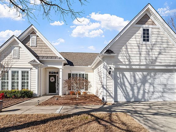 Have you ever walked into house and you just know it is a place to call your own? The ambiance, warmth, decor and floor plan of this well-appointed home in Cary's premier 55+ active adult community does not disappoint. Beautiful but also practical, it boasts of extensive upgrades: In the last few years it has had NEWER: roof, HVAC, water heater, hardwood flooring, exterior paint & interior paint! Hardwood floors throughout the common areas, with tiled floor in the kitchen. Gracious dining room with custom-painted ceiling and plantation shutters. The large office with glass French doors offers flexibility for use as a den or hobby room. The kitchen features an electric cooktop, covered exhaust hood, Zodiac quartz counters, wall oven & microwave, pantry, center island and breakfast bar plus a solar tube for extra sunlight. Living room with gas fireplace and updated ceiling fan opens up to the light-filled sunroom. Primary bedroom/bath with tray ceiling, whirlpool tub, separate shower and framed mirror. 2 guest rooms and bath. Delightful covered patio with pavers has been extended to provide a large outdoor entertainment space and to enjoy Carolina weather. Large side yard offers extra privacy. Enjoy top notch amenities including indoor & outdoor pools, gym, tennis courts, pickle ball courts .....and many more.