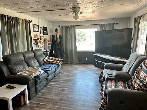 Welcome Home to this 2 Bedroom, newly remodeled home. Open concept floor plan with gorgeous new flooring throughout. Lots of storage and counterspace in the kitchen. Both Bedrooms have large closets. There is a covered porch and wheelchair ramp. The owner just installed new skirting and fresh paint. There are two large sheds and a fenced dog run. Lot rent is $465/month, which includes water, sewer and trash. Property owner is responsible for gas and electric bills. Buyer must fill out mobile home park application.