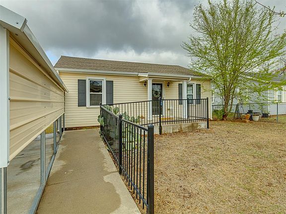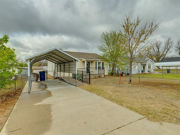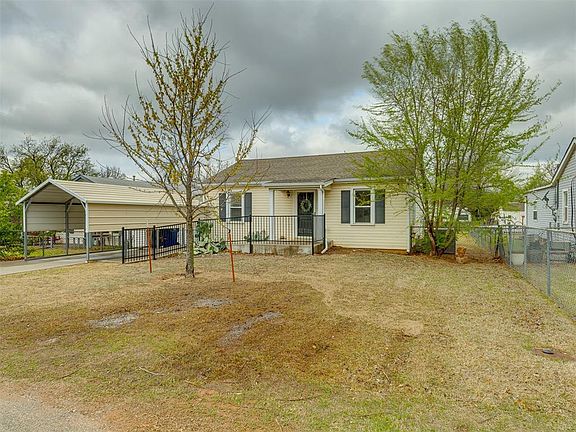 Welcome to this adorable Blanchard Bungalow! This bungalow features 2 bedrooms, 1 bath with authentic wood flooring, no carpet throughout the entire home, large fenced in backyard, carport, outbuilding, beautiful deck in front and back of home, updated bathroom with large shower and ample storage and a updated kitchen. This home also has a newer HVAC system, updated plumbing, wiring and sewer line. If you are looking for an adorable home in the quaint town of Blanchard, this is the one for you! Schedule your showing today!
