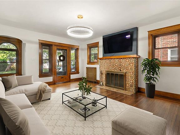 Tree-lined, walkable WEST-END. This all brick, BEAUTIFULLY UPDATED TWIN screams distinctive, PEROTTO CRAFTSMANSHIP & charm. FULLY UPDATED, EAT-IN KITCHEN, w heated tile flooring, quartz countertops & BRAND NEW SS APPLIANCES. Tall ceilings, patterned hardwood flooring that is newly refinished, wood millwork & new windows throughout. Refreshed powder on the 1st FL. Living room features a fireplace, surrounded in Moravian tile. Glass accordion French doors separate the living rm and dining rm. Dimmable lighting throughout. Upstairs you'll find 3, nicely-sized bedrooms, a ceramic tiled bathroom. The attic, with walk-in closet, is ready to be finished as an extension of the master suite. Great potential for a den & extravagant closet. Large basement w tons of potential, features a newly installed full, modern bathroom. Bilco door access from the basement to the attractive backyard. The private courtyard is ready for summer entertaining on balmy evenings. COME SEE IT!