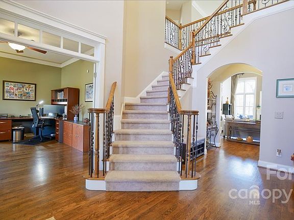 ***New reduced price of $950,000 ($15,000 price cut) with 3 year complete home warranty ** Situated on hole 8 with fantastic golf course views, Foyer flanked by office & formal dining rooms w/french doors, gorgeous woodwork & trim. Stunning 2-story great rm w/fireplace & catwalk. Hardwoods in main living areas w/gourmet Chef's kitchen featuring granite countertops, s/s fridge, gas cooktop, dbl ovens & pantry! Durable Trex deck off of breakfast nook. Relax & retreat in the primary suite w/ his/her custom WIC w/ drawers & shelves, glass shower & soaking tub. Incredible finished basement perfect for teen or in-law suite w/ kitchen, full bath, rec/billiard, living room w/ stone fireplace, surround sound & 2 addt'l rooms for crafts & workout space w/utility sink. Walk out to stone patio & enjoy peaceful views. HUGE storage area w/shelving will fit any need. Store lawn equipment in attached outside storage room. Top rated Cabarrus County schools and lower Cabarrus County taxes !