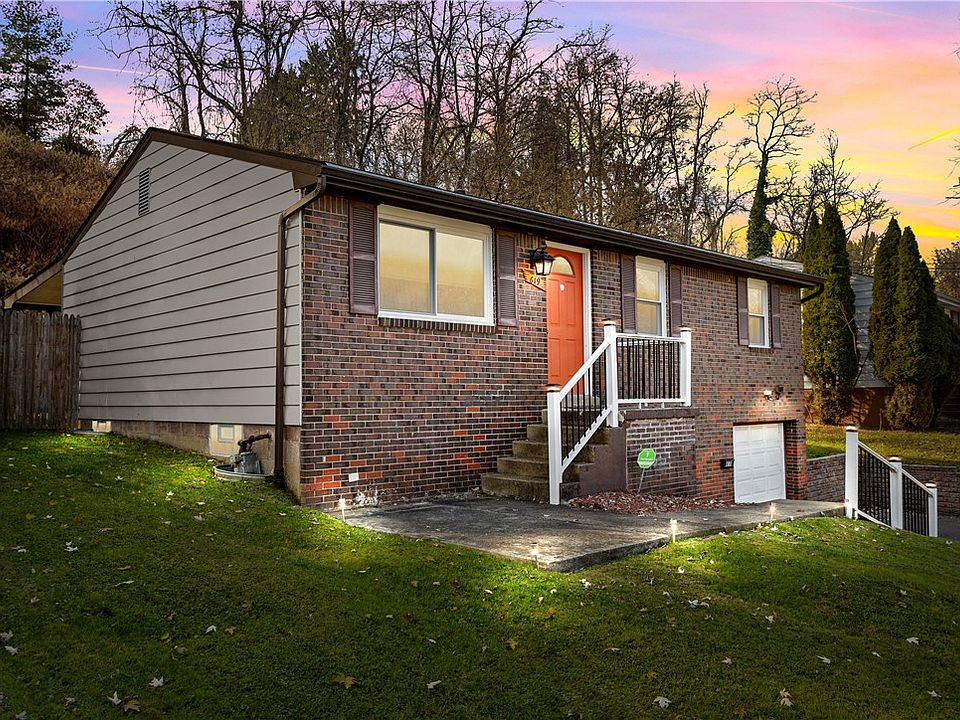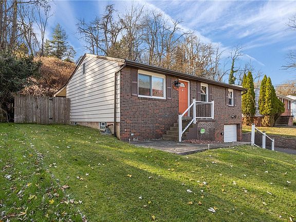 This three-bedroom, two-bathroom home has undergone several renovations over the years including fresh paint and brand new windows. The kitchen features recessed lighting, stainless steel appliances, backsplash, granite countertops, and large cabinets. The living room and kitchen seamlessly connect to a dining area & opens up to a fenced backyard. The living room boasts a captivating stone accent wall and large window allowing plenty of natural light. Beautiful hardwood floors throughout and white doors with bronze fixtures. Enjoy the convenience of single-level living with three spacious bedrooms & a finished game room. Nestled in the highly sought-after Penn Hills neighborhood, this home is situated on a peaceful cul-de-sac. Outside, a sturdy retaining wall & French drain ensure a dry environment, complemented by an interior sump pump for added protection. All appliances are included & the property comes with a one-year home warranty. You'll love where you live at 619 National Dr!