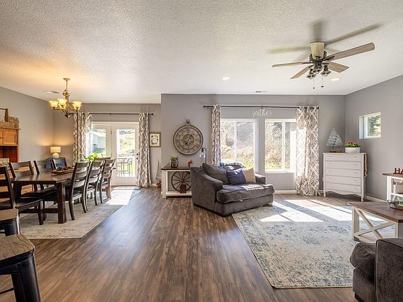ALMOST BRAND NEW 4 bed, 2.5 bath + office home on over 3 acres with a 36' x 48' shop for all the toys! Granite counters, vinyl durable flooring, wonderful open concept kitchen with island and soft pull cabinets, crown molding and Stainless Steel appliances. Vaulted ceilings downstairs and a nice family room upstairs. Large concrete stamped patio and easy maintenance yard. New septic system with RV hookup. Wrap around driveway and lots of extra land that can be usable with some sweat equity for more shops, etc. A must see!