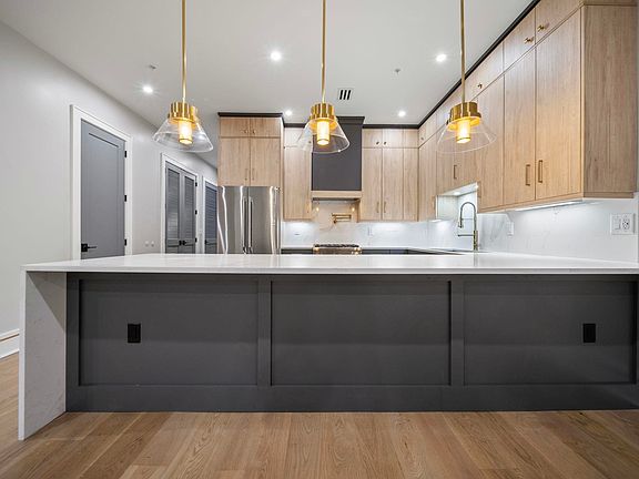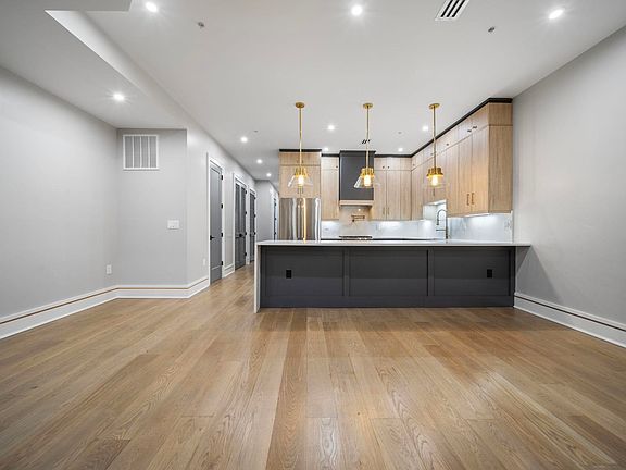 Welcome to 619 Palisade Avenue unit 1, a premier high-end new construction condo from NKAY Developers in the heart of Jersey City Heights. Conveniently located on Palisade Avenue, just steps from Light Rail and Riverview Fisk Park. This unit features 3 bedrooms, 2 full baths, 1 half bath, and a private backyard. The entryway sets the tone with custom built-in millwork, providing a stylish functional drop zone for coats and everyday essentials. Custom designed kitchen offers top of the line stainless steel Thermador appliances including wine fridge, XL quartz waterfall counters and backsplash, oversized stainless steel sink, two-tone custom cabinetry, pot filler, stylish gold hardware and fixtures, and high-end pendant lighting. Open-Concept living and dining room are complete with a fireplace framed with custom millwork and oversized Andersen. Main bedroom suite offers ample natural light and boasts a luxurious accent wall with dual pendant lighting, walk in custom closet with custom built-in shelving and drawers and frosted glass doors and walk-out backyard. Ensuite bathroom offers clean design with white tile and porcelain slabs as well as oversized double vanity, dramatic warm accent lighting, and a top of the line waterfall shower, complete with sprayer and jets and soaking tub. Each additional bedroom features high end custom built-in closets and common bathroom. Washer/dryer in unit add to the convenience of the home. The home is also equipped with a smart doorbell, keyless entry, Legrand smart dimmers, and energy-efficient smart thermostats. The exterior facade has been designed with modern yet timeless features, exterior lighting, professional landscaping, and a fenced-in front yard. This property comes with a 10-year warranty and 5 year tax abatement. Highly sought after location being steps from new restaurants, shopping, palisade ave bus stop, Congress st light rail, Riverview Fisk park and much more! Please note that square footage is approximate. Off-site parking available.