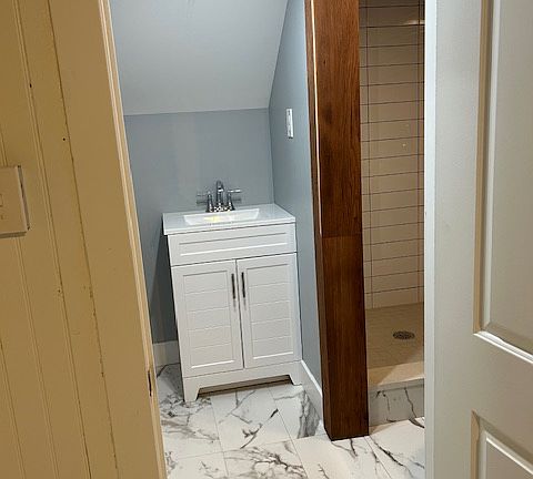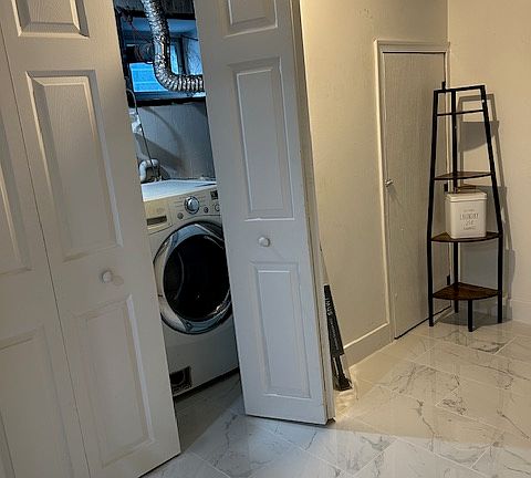 This is a newly rehabbed home with a spacious private room in the basement with private entrance and full bathroom. Enter the space through the back basement door with marble floors leading to laundry room space and then enter bedroom. This room comes fully furnished with brand new full size bed and 43 inch tv. Room also equipped portable wardrobe closet. This home is located in a quiet neighborhood walking distance to train (regional rail- Jenkintown Wyncote station)