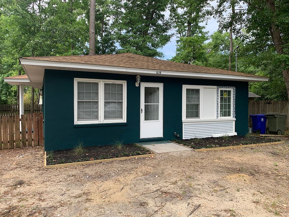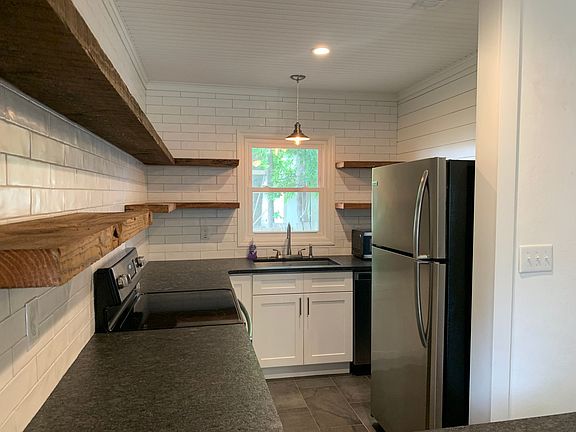 Walk to the beach in minutes! Charming two-bedroom, two-bathroom home is located on the ocean side of Hwy 17 Business in Surfside Beach. The unfurnished home is nestled among trees with a large fenced-in side and back yard and has hard surface flooring throughout. Kitchen features white lower cabinets, subway tile, floating solid wood shelves, and a deep sink. It is equipped with stainless and black appliances including a smooth-top stove, oven, refrigerator, and microwave. The primary bedroom is located toward the front of the home and has a private bathroom with a modern, tiled, step-in shower. The second bedroom and bathroom are located toward the back of the home. Stackable washer-dryer is provided as-is with no warranty. Rent: $1,695. per month. Tenant is responsible for all utilities. Security deposit: $1,695. Renters insurance is required. Pets are not permitted Property is non-smoking. Southern Coast Management Offices hours: Monday - Friday 9:00 am - 5:00 pm. Background check, rental history, income verification, and credit check are required.