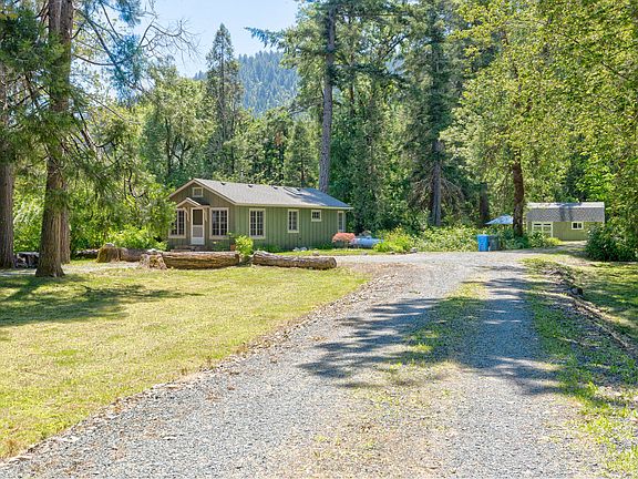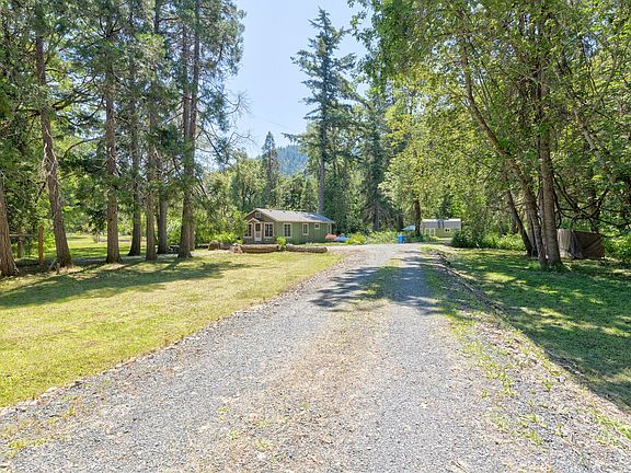 Country cottage living at its finest! Enjoy your privacy on this cozy 6.69 acre lot with an adorably updated cottage style home. Perfect for security with a gated entrance and wooded lot to protect you privacy. The land features flat, shaded areas with lots of tree cover and a creek. Newer plumbing, wiring, roof, with original pocket window frames that have been updated with 1/4 thick glass. Featuring all stainless steel appliances, granite counter tops, electric heating and a Wiseway Pellet Stove, and an updated cedar plank deck with planter boxes and benches - perfect for entertaining or simply enjoying nature! Grave creek runs through the property, with plenty of space on the backside. Apple, plum and grape trees on the the property. High performing well with a performance pump and UV filter.