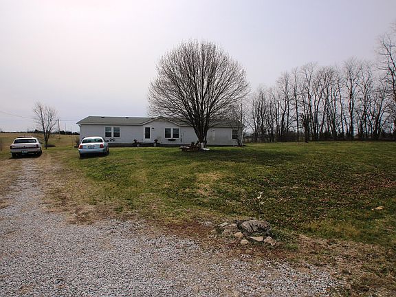 REALLY NICE MANUFACTURED HOME SITTING ON 5.1 + or - acres. Home is very roomy with formal living room with fireplace, large family/den room, nice size master bedroom, master bath with corner tub, two more bedrooms and another full bath. Utility room leads to a large outside deck. Outside are 2 additional buildings, one is the 60 X 20 barn and a detached garage. The third outside bldg. beside the outside back deck does not remain with the property. Some fencing on the acreage. Kitchen appliances and window blinds remain with the home. Located close to the interstates and other points of interest. Make an appointment for a personal tour of this lovely home.