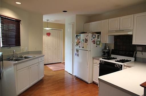 FRESHLY PAINTED, CLEAN AS A WHISTLE. VERY GOOD LOCATION ON RIDGEWOOD CT WITH DECK OVERLOOKING WOODED AREA- GROUND LEVEL LIVING/DINING AREA AND LARGE KITCHEN. CARPETED LIVING ROOM WITH VAULTED CEILING AND FIREPLACE. HARDWOOD FLOORS IN DINING AREA, KITCHEN AND ENTRY. 3 BEDROOMS, 2 FULL BATHS ON SECOND FLOOR. LOWER LEVEL FAMILY ROOM WITH WOOD FLOORS, FULL BATH. LARGE LAUNDRY ROOM. GARAGE HAS PANELED WALLS, BUILT IN CABINETS AND WORK BENCHES.