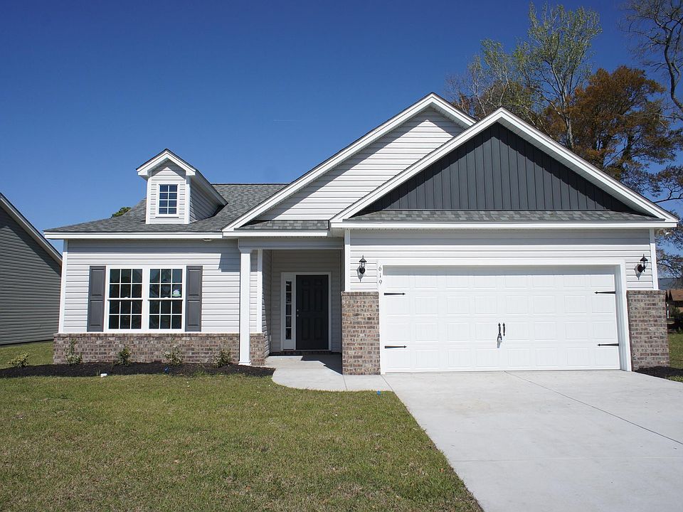 Beautiful Edisto floor plan in the new Ocean Palms community. This terrific open floor plan home will have upgraded wood-look LVP flooring throughout. Stainless appliances, staggered-height Shaker-style grey cabinetry, quartz counters, a walk in pantry and a huge work island/breakfast bar combine to give the kitchen the wow factor you're looking for, and the bay windows in the dining area flood the room with light. Double French doors in the dining room lead to a large covered porch and a concrete patio. They over look a side yard, large enough for a small pool, with wiring in place for it! The spacious owner's retreat features a tray ceiling, walk in shower, long quartz vanity with double sinks, plenty of storage in the cabinetry and linen closet, plus a huge walk-in closet. Two additional bedrooms and a full bath with quartz counter are tucked off on their own private hallway, for privacy. All of the homes in Ocean Palms come standard with the luxury of natural gas (tankless water heater, gas heat, and gas range). The garage is completely trimmed and painted, with floored attic space accessed by drop-down stairs. Ocean Palms is conveniently located near shopping, restaurants , schools and world class medical offices and hospitals, and is only a short golf cart ride to Surfside Beach's gorgeous beach and the Atlantic Ocean. Other floor plans and inventory homes may be available. Community Pool and Cabana are now open! Photos are of a completed, similar home and may have different features.