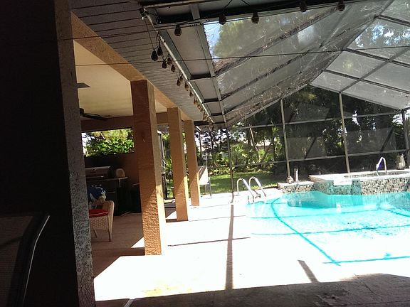 Fantastic family home! 3 bedroom + pool home with 2 full bathrooms and a pool bath, wood-burning fireplace on nearly 1.5 acres of manicured yard. Additional features of this home include circle drive, 3 car garage, double door entry, tile throughout with the exception of guest bedrooms, spacious kitchen with island, pass-through window to lanai, walk in pantry and dining area. Office area could be used as formal dining room. Master bedroom suite features sliding doors overlooking pool with 2 walk-in closets, large vanity with mirror, solid surface shower and plumbing and space for tub. The family room area features a woodburning fireplace and built-in cabinets/desk. The spacious lanai overlooks a screen enclosed pool with hot tub, mother in law suite inside the home, air conditioned shed on property for extra storage/workout room. Please call 239-898-1380