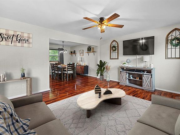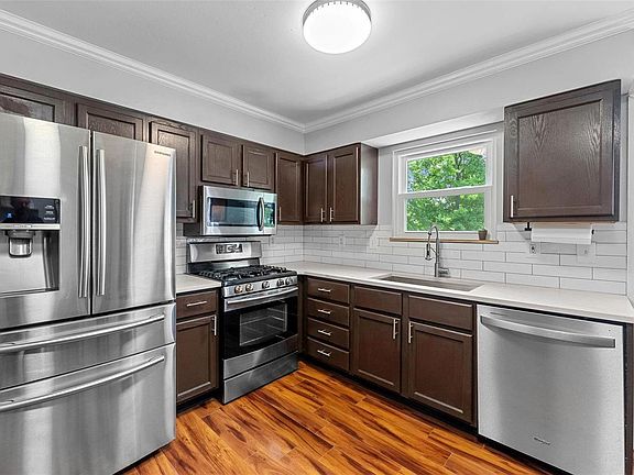 Lovely 3 bedroom/2 bath split foyer with oversized 2 car garage. The living room/dining room combo is the perfect area for entertaining and living room includes ceiling fan. Laminate flooring throughout most of the main floor, 6 panel doors, plantation blinds and updated lighting. The kitchen has lots of cabinets with new quartz counters, stainless steel appliances, gas stove, new backsplash and lovely window to look out to the backyard. Master includes ceiling fan and has its own full bath with shower and new vinyl flooring. Two other bedrooms with carpeting. Hall bath was renovated with new vanity and Luxury Vinyl Plank flooring and includes a tub. Large family room downstairs with wood burning fireplace and lookout windows. New retaining wall in driveway area and new landscaping installed last year in the front. Level, fenced back yard with deck, large concrete patio, shed that will stay, electrical added for exterior area and firepit. Great location as well!