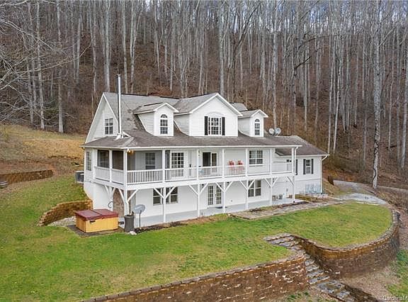Look no further for expansive views, abundant living space, and income-earning potential in this private 3 bed/3.5 bath home on over 11 acres in convenient South Asheville! Spend your days enjoying the panoramic, long-range views seen from all around the home including the two levels of covered decks that run the length of the home. You will love the open living spaces awash with natural light, the master on the main level along with the two-car garage. Two over-sized bedrooms and a loft await you on the second level. The home also features a lower level second living quarters with full kitchen, well-appointed bath, private entrance with potential rental income! Relax your day away in the hot tub that overlooks a truly remarkable, year-round vista. Zoning permits Bed & Breakfast as a "conditional" use. Buyer to verify. Come see this lovely house today and make it your home!