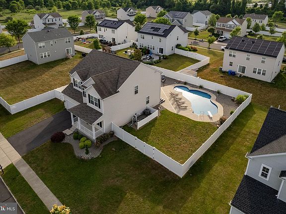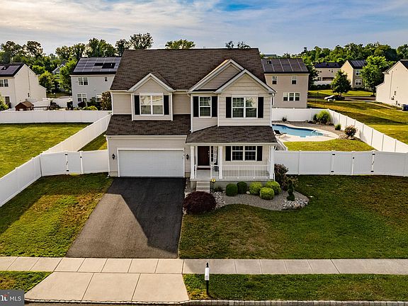 Welcome home to this beautifully updated, open-concept home in the desirable Oak Mill Estates neighborhood of Florence Township. This “Poplar Model” style home is an entertainers delight which sits on ¼ acre. Featuring 4 bedrooms, 2.5 baths, and an oversized, two-car attached garage. The big, naturally bright entryway welcomes you as you enter the front door from your large, covered front porch. There is an office/library/bonus room off of the foyer. The main living space features 9 ft. ceilings. Vinyl flooring runs throughout the first and second floors. Beautiful crown molding and custom woodwork can be found throughout the home, adding architectural character. The spacious kitchen, boasting a large eat-in center island, 42-inch cabinets, granite countertops, tile backsplash, stainless steel appliances, and a walk-in pantry that is sure to please any chef. The open-concept floor plan flows right into the dining room, where you can enjoy views of your beautiful backyard oasis from the sliding doors & picture windows. This space is suitable for entertaining as it flows into the large 27’ x 13’ great room with a modern corner gas fireplace. There is a half bath and an additional coat closet to the rear of the great room. Enjoy a clutter-free home with an "Everyday Entry" feature located just off of the two-car garage This is perfect for the active family as it provides a dedicated area for life’s "Stuff" as soon as you walk in the door. The second floor features an open 20’ x 12’ loft/bonus room, a huge primary bedroom with a large walk-in closet, and a primary en-suite bath with a linen closet. On the second floor, you can also find three additional bedrooms and another full bath. The laundry area is conveniently located on the second floor. A full, high, and dry basement is currently unfinished and awaiting a buyer who wants to create even more living space. The backyard oasis completes this home, featuring a concrete patio, a beautiful custom inground pool, a fire pit, and a storage shed. The pool filter is partitioned with a small vinyl-fenced area to keep the equipment and trash containers from eyesight. You won’t want to miss this beauty. So, make your appointment today. Conveniently located two miles to NJ and PA turnpike for easy NYC and Philadelphia access.
