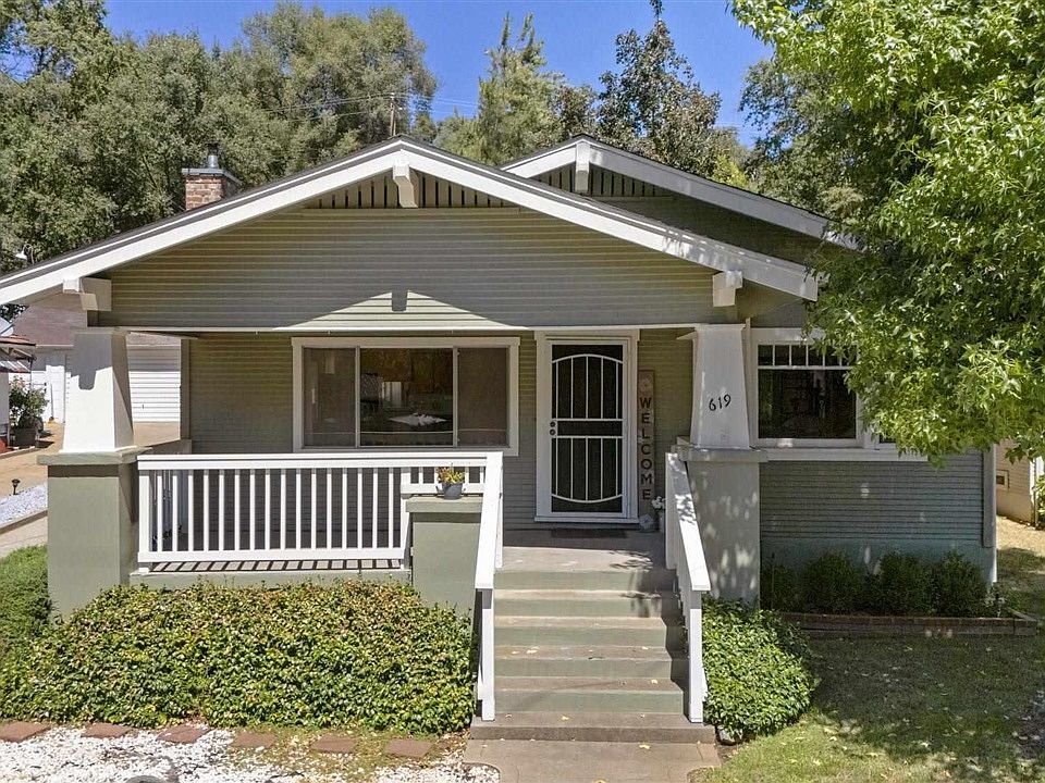 Welcome to this charming Downtown Sonora Craftsman, nestled on a beautifully landscaped .13-acre lot. Built in 1930 and lovingly maintained, this single-level home boasts 4 bedrooms, 2 bathrooms, and a blend of timeless character with a few modern conveniences. As you approach, the inviting covered front porch sets the tone—perfect for enjoying your morning coffee or unwinding after a long day. Step inside to the cozy living room, where a pellet stove adds warmth and ambiance. The kitchen, while functional, is ready for your personal touch and creativity to bring it up to date, or to leave as-is. Ample built-in storage throughout the home provides plenty of space for all your needs. The main bathroom, located in the hallway, features a tub/shower combo, providing extra comfort for daily routines. The layout includes a unique feature where one bedroom serves as a pass-through to another, currently used as a recreation room. The main bedroom is a peaceful retreat, boasting a large closet and an abundance of natural light. The heart of this home extends to the fully fenced backyard, an entertainer's dream with a patio and a crisp lawn, ideal for hosting gatherings or simply relaxing in your private oasis. Recent updates include a new roof and water heater, both just 2 years old,