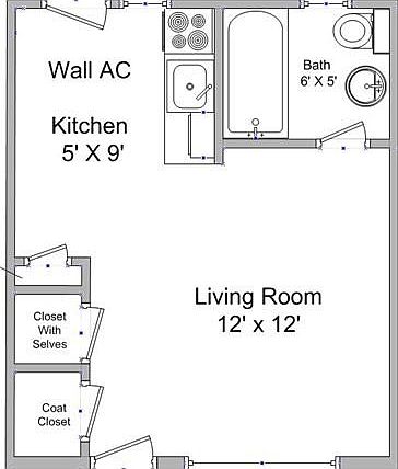 Just remodeled with all new cabinets, counters, floors and appliances. First Floor Apartment includes in wall AC, stove, refrigerator, full bath tub, two closets. Five minute walk to laundry mat. Convenience store across the street. Quiet and secure neighborhood on bus line. Tenant responsible for electric heat plus cable and phone if used. Smoking is only permitted outside the units on the covered front and rear porches at a friendly distance from any other non-smoking tenants.